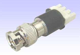 Various industry standard types of coaxial connectors (75 Ohm) are available including male and female combinations of BNC, 1.6/5.6, 1.0/2.3, and Type 43. The 3-pole toolless IDC connector used for wrapping single-conductor connections (120 Ohm) utilizes a slit in the cable anchor to allow the cable to be inserted after termination. The toolless IDC connector is also offset so that a cable can be positioned between baluns on the DDF/patch panel as required. The toolless IDC connector is clearly labeled A, B, and G (Ground) to make installation more convenient.