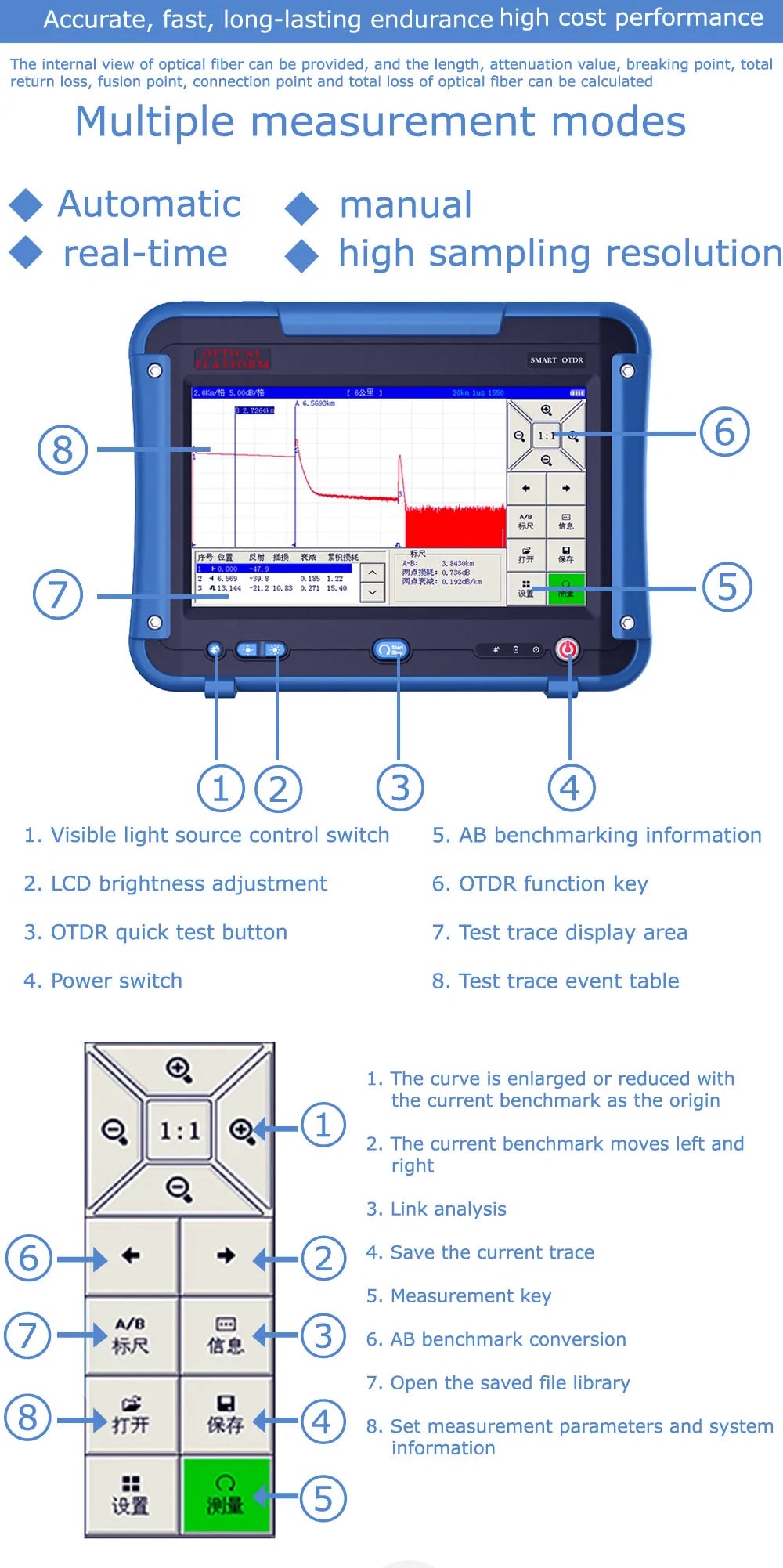 5.With 50ns pulse, single-mode reflection rate of less than -50 dB typical dead zone.