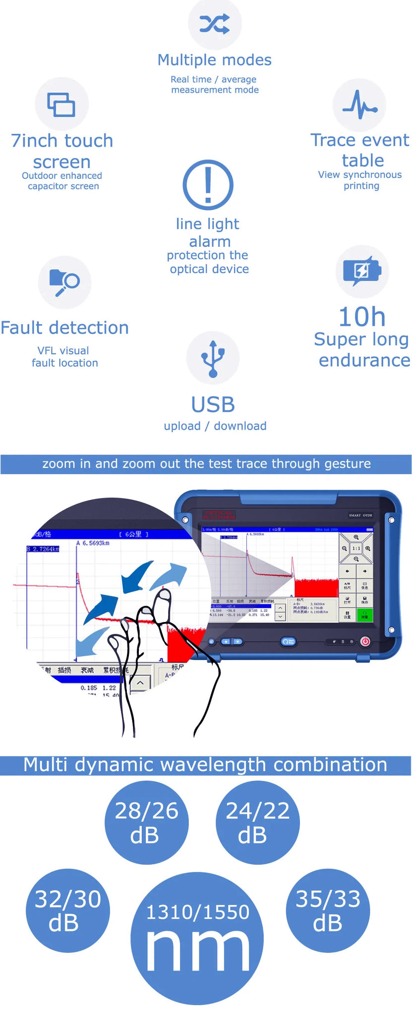 BD900 series of Optical Time Domain Reflectometer otdr has excellent dead zone performance and wide dynamic range. The otdrs are four models to choose from and that can betterly meet the customer’s specific measurement requirements. Combined with the visual fault locator, it can easily find the breaks, bends, splices, faulty connectors, and other causes of signal loss.